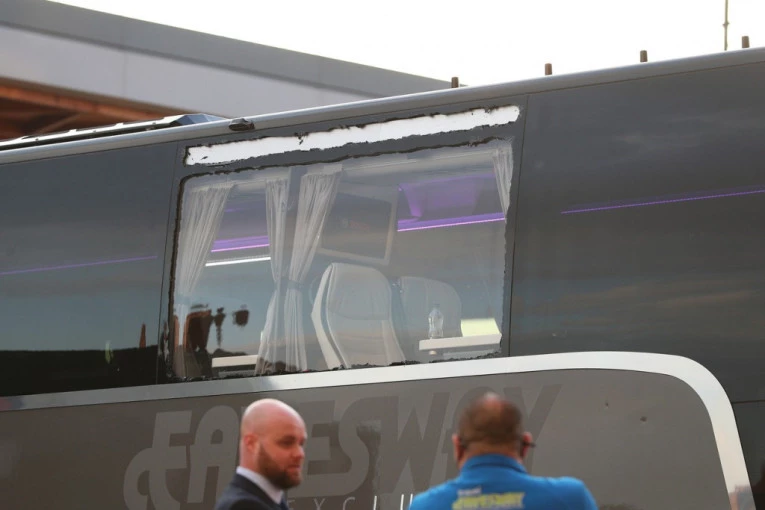 Grupa izgrednika je napala autobus bakljama i čvrstim predmetima i uspela je da ošteti najmanje jedan prozor.