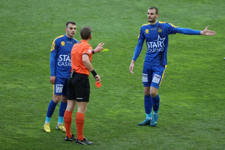 Vukotić je u 27. minutu napravio veoma loš potez po svoju ekipu, jer je posle duela sa protivničkim fudbalerom pokušao “ćuškom” da poravna račune.