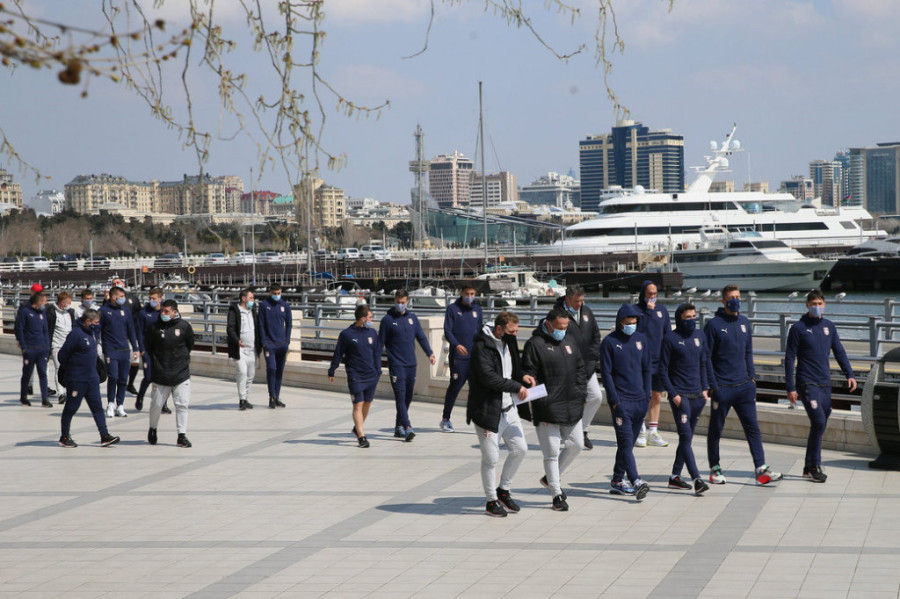 Iz Bakua stižu fotografije kako su igrači Srbije proveli ponedeljak ujutru. Nasmejani, mada im se osmeh teško vidi od maski koje moraju da nose i dobro raspoloženi fudbaleri Srbije su se se prošetali gradom. Posebno je bilo interesantni videti sve zvezde i zvezdice evropskog fudbala kako pod komandom majstora za fizičku pripremu Kacušita Kinošija rade vežbe na platoa ispred Muzeja ćilima.
