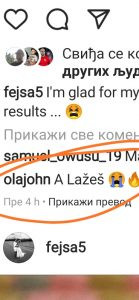Posle poraza Fejsa se oglasio na Instagramu, gde je navijačima skrenuo pažnju da je zadovoljan golom, ali nesrećan zbog poraza na šta mu je stigao komentar bivšeg saigrača iz Benfike Holanđanina Ole Džona. Objašnjenje nije potrebno. Džonu se mora odati priznanje na poznavanju srpskog jezika.