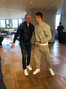 Iskusni srpski defanzivac Aleksandar Kolarov posetio je u hotelu ekspediciju Crvene zvezde, porazgovarao sa generalnim direktorom srpskog šampiona Zvezdanom Terzićem i poželeo iz puno sreće u večerašnjem duelu.