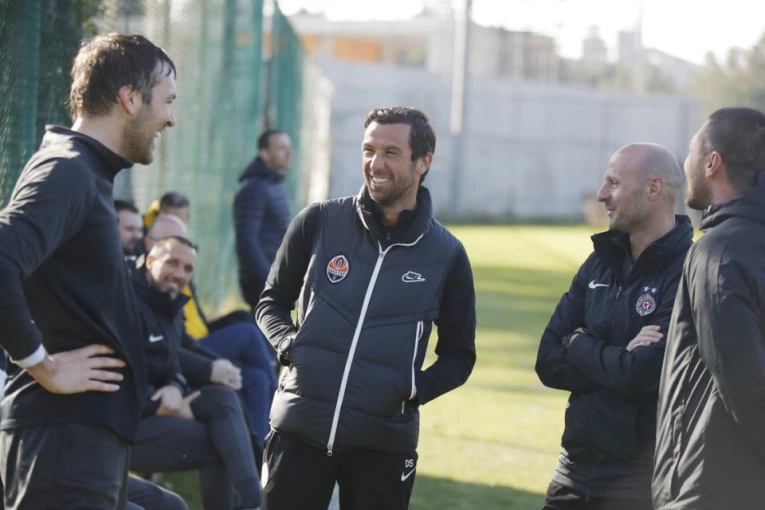 Dobro poznato lice na treningu Partizana. Nekadašnji hrvatski reprezentativac Hrvatske Darijo Srna, danas direktor ukrajinskog Šahtjora, iskoristio je priliku da se vidi sa velikim prijateljima posebno pomoćnikom trenera Stojanovića Igrom Duljajom sa kojim je godinama delio dobro i zlo u ovom velikanu sa prostora istočne Evrope.
