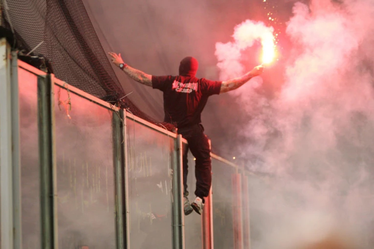Kasnio je početak utakmice dobrih 35 minuta zbog haosa koji su napravili "srpski navijači", kojih je u Đenovi bilo oko 2.000. Paljene su baklje, bacane dimne bombe, a žrtva napada bio je i golman "orlova" Vladimir Stojković, koji se zbog svega nije ni pojavio na terenu.