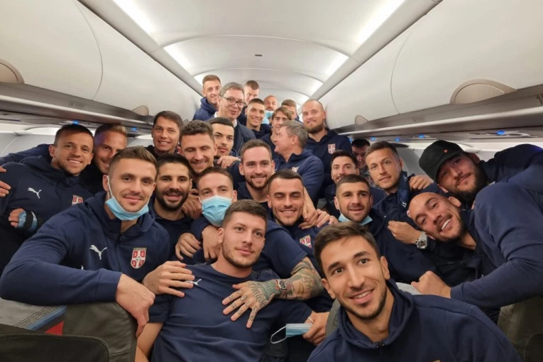Prdsednik Srbije Aleksandar Vučić iznenadio je fudbalske reprezentativce Srbije u avionu kojim su krenuli na odlučujući meč za plasman na Svetsko prvenstvo u Kataru i tom prilikom im poručio da pobede u Portugalu, ali i obećao dodatnu premiju od milion evra.