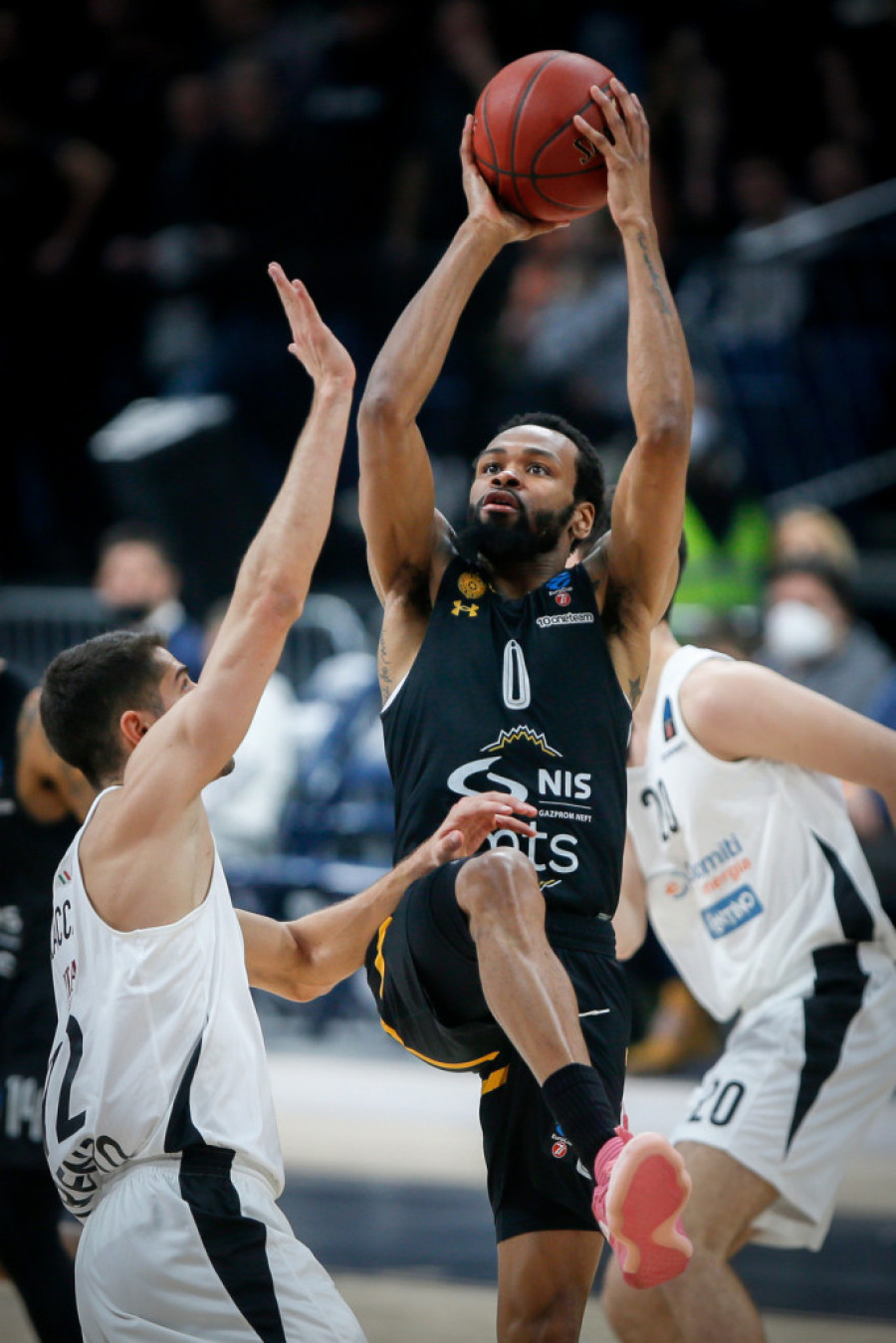 Partizanov centar dominira visinom, a kada se pojavi još u tako drečavo zelenim patikama postaje još uočljivija pojava.