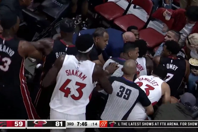 Kakav skandal na NBA terenima! Košarkaši se potukli tokom meča i to u prvom redu publike - Tu je bio i Srbin (VIDEO)