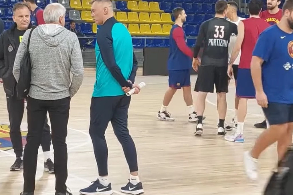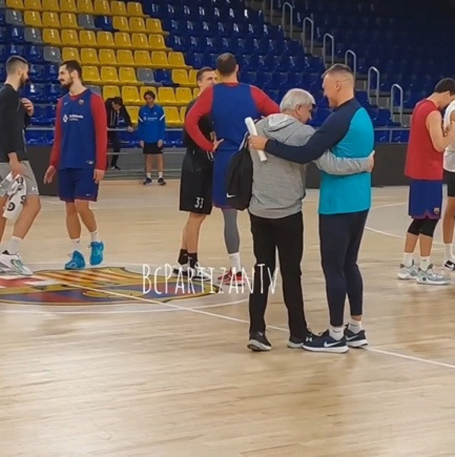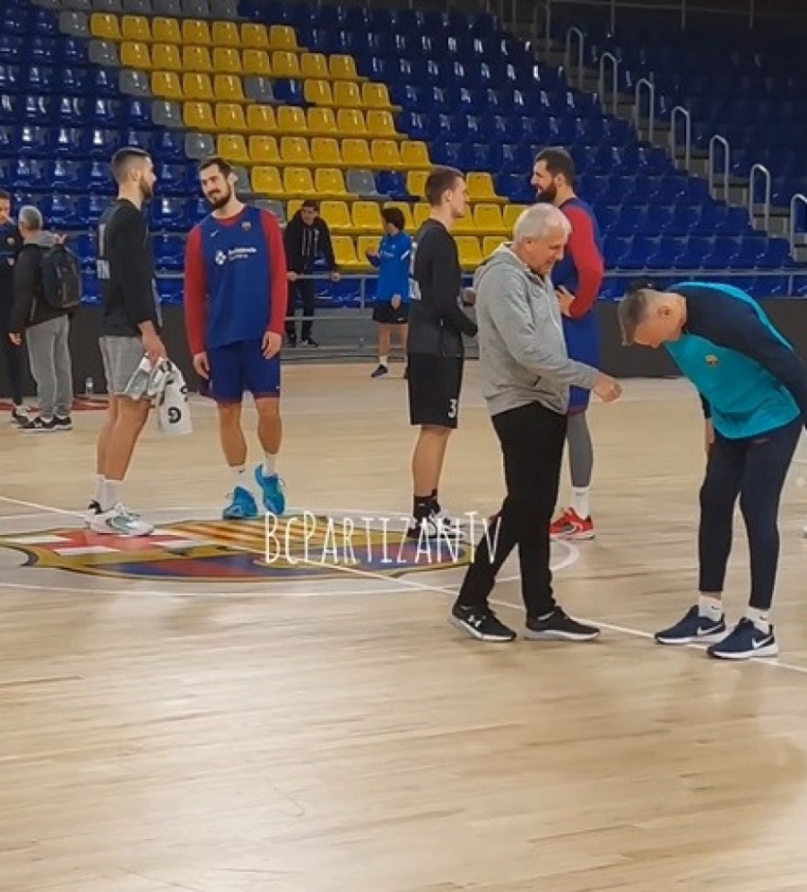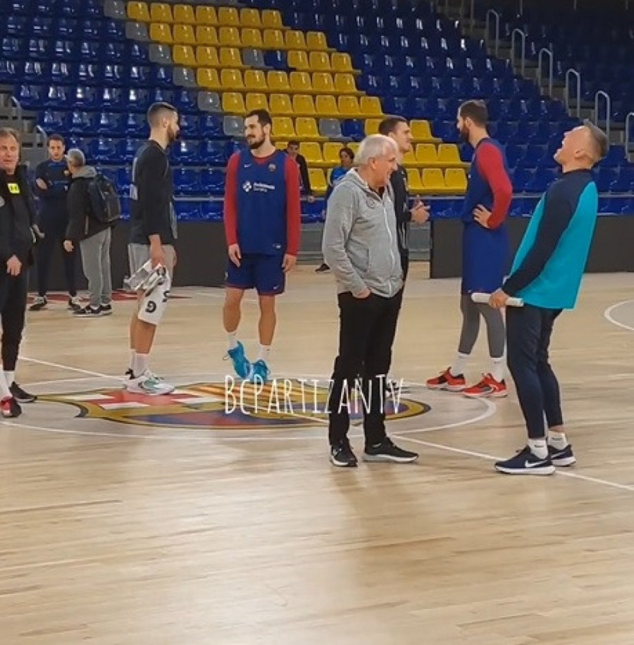 Košarkaši Partizana susreli su se na treningu u Blaugrani sa igračima Barselone sa kojima će večeras (20.45) igrati meč 9. kola Evrolige.