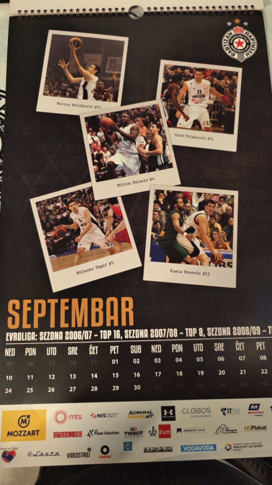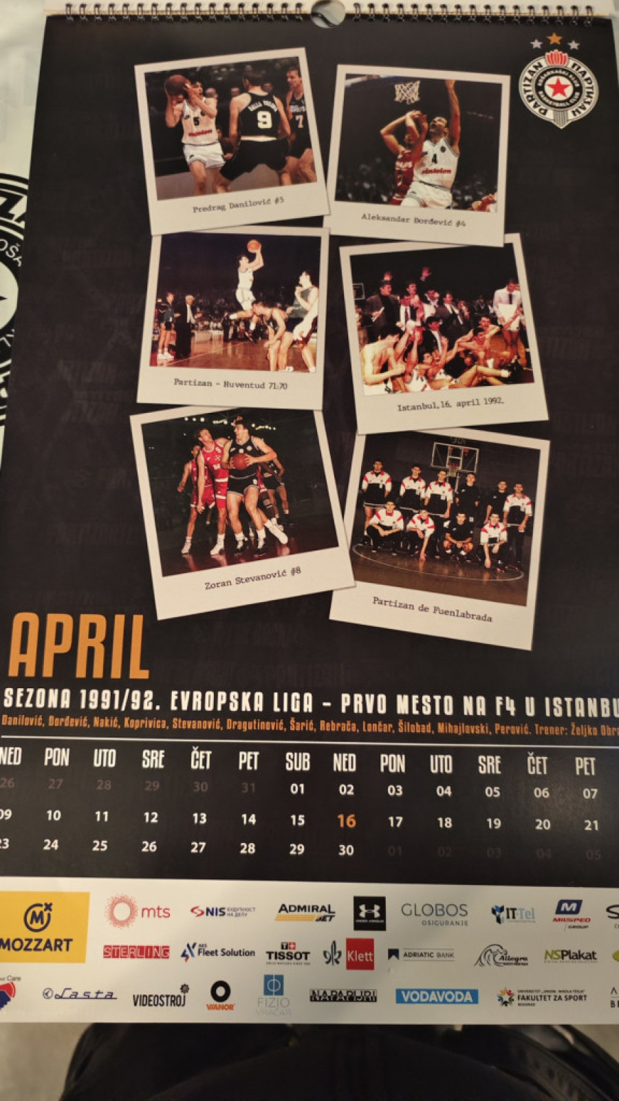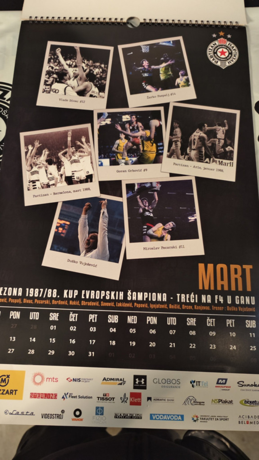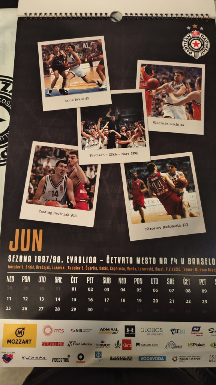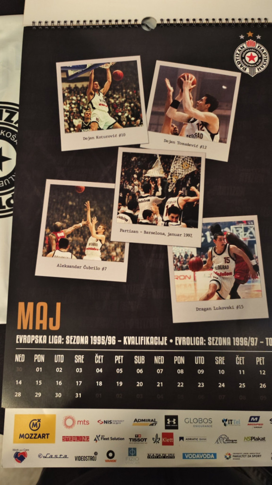 Kalendar, naime, izgleda kao pravi crno-beli vremeplov, s obzirom da je svaki mesec posvećen svakoj značajnijoj sezoni najtrofejnijeg srpskog košarkaškog kolektiva u Kupu šampiona, kasnije Evroligi.