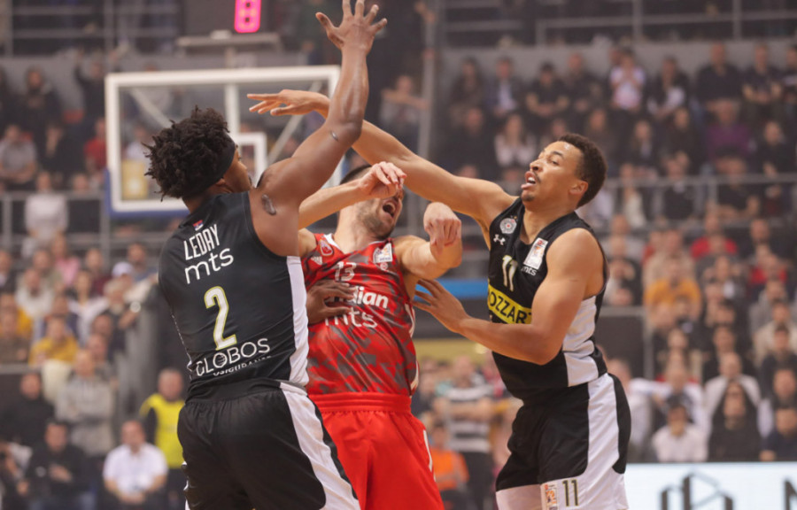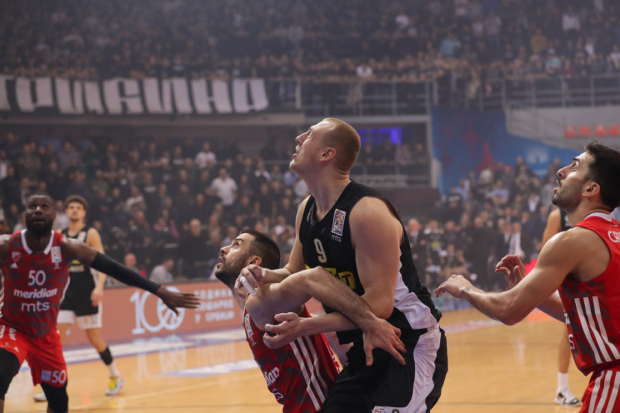 Posle dva i po sata igre, Partizan - Crvena zvezda 75:83 (21:15, 23:19, 14:25, 17:24).
