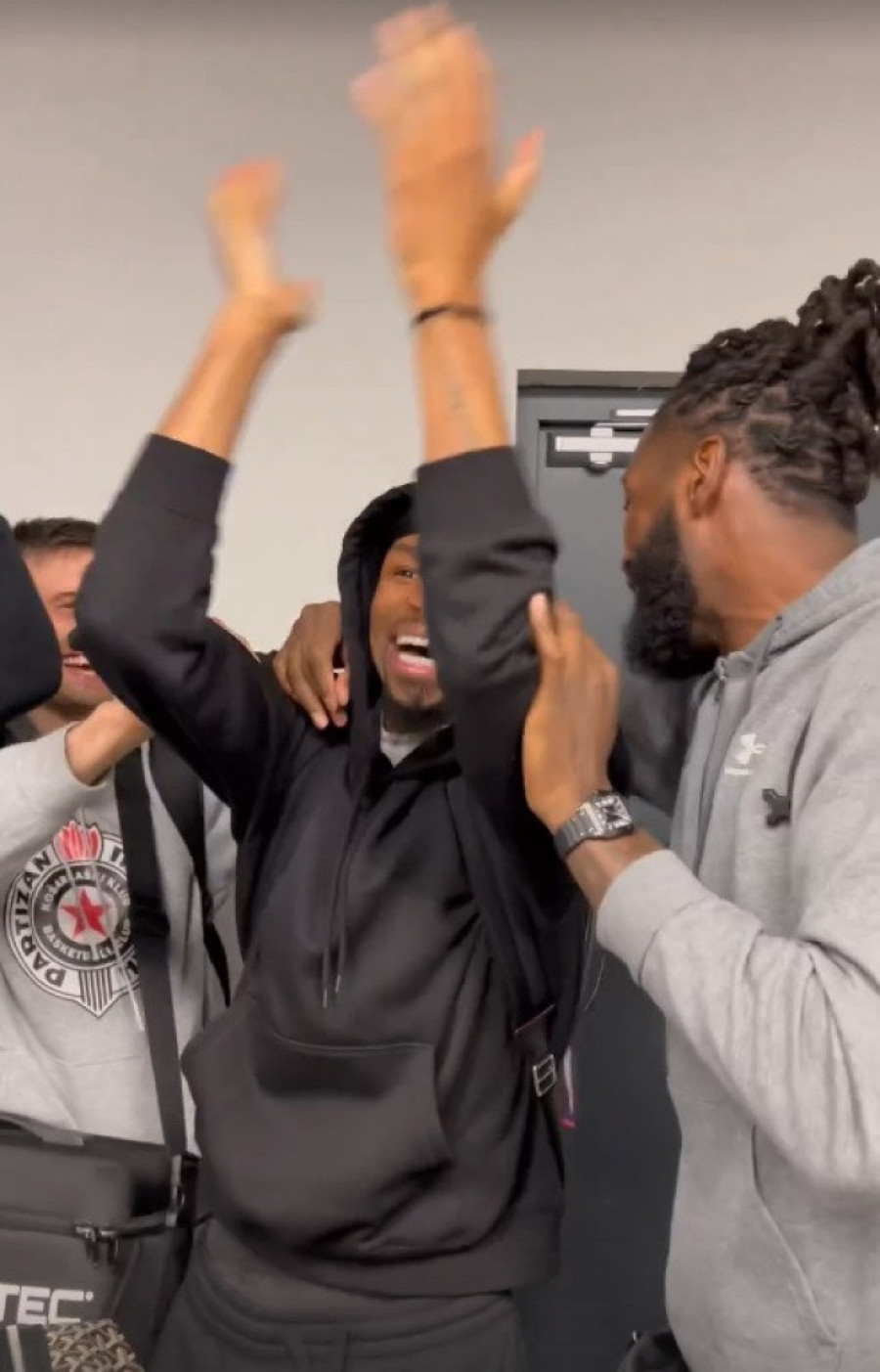 Košarkaši Partizana doputovali su jutros u Beograd, gde su im navijači prireredili doček odmah po sletanju na aerodrom "Nikola Tesla".