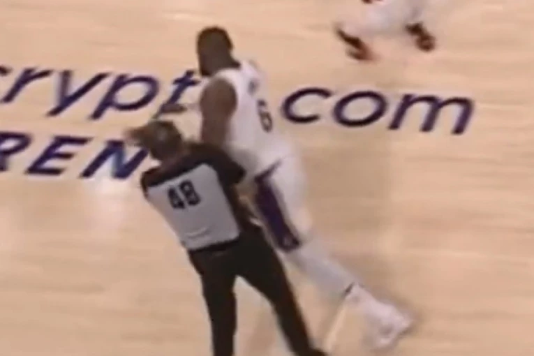 Naravno, namera nije postojala. "Kralj" je želeo da se što pre vrati u odbranu kako bi sprečio kontru Nagetsa, ali je usput zakačio sudiju kome je od siline udarca pukla usna.