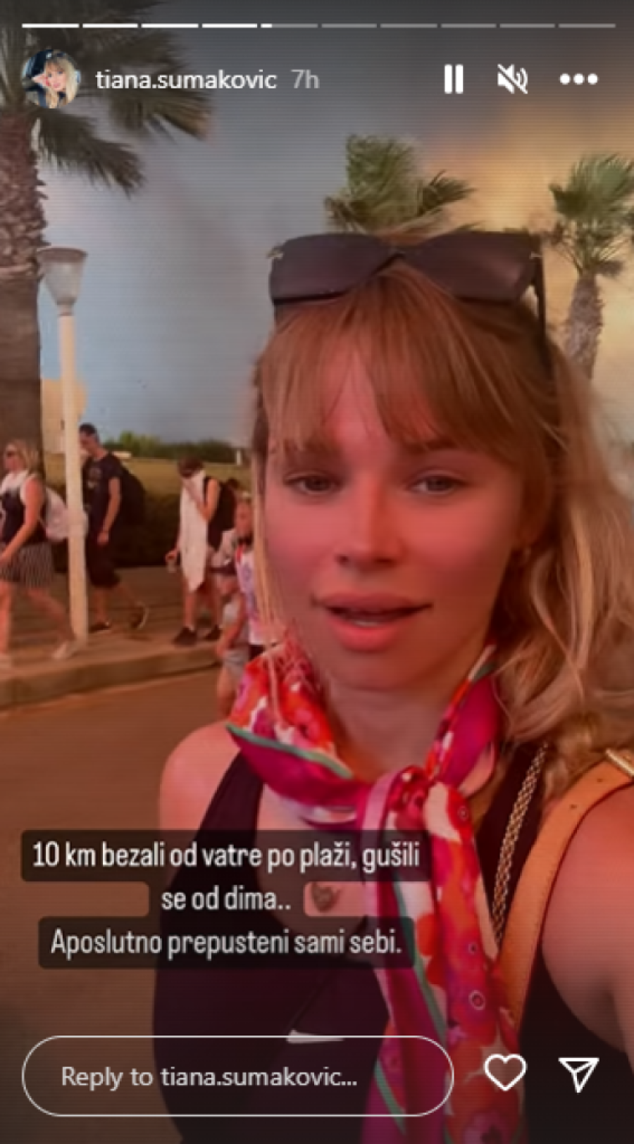 - Deset kilometara bežali od vatre po plaži, gušili se od dima, apsolutno prepušteni sami sebi. Onda smo došli u drugi hotel gde smo trebali da budemo bezbedni i da sačekmo da neko dođe po nas - napisala je Šumakovićeva, a onda objasnila da tu drami nije bio kraj.