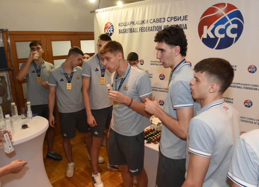Juniorska košarkaška reprezentacija Srbije sinoć je postala šampion Evrope, a po povratku u Beograd, predsednik saveza, Predrag Danilović je ugostio zlatnu ekipu i stručni štab.