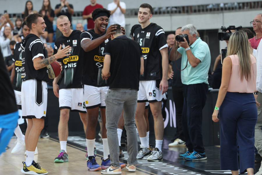 Žurka je nastavljena, akteri su malo odmorili, crno-bele veče pod vedrim nebom u Beogradu ulazi u završnicu. Sada košarkaši Partizana igraju u crnim dresovima, da pokažu navijačima i drugu garnituru.