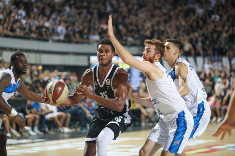 12. minut - Grobari čekaju trojku Kaminskog, za sada ne uspeva. Naneli postiže prve poene, navijači to pozdravljaju aplauzima. Posle koša Naneli asistira Jaramazu, ide trojka crno-belih, koji vodde sa 29:13.