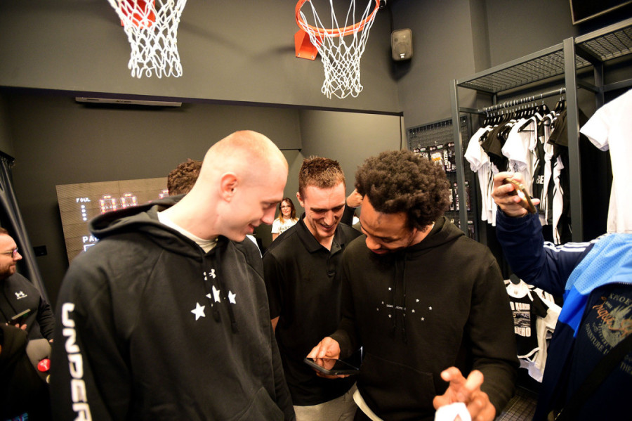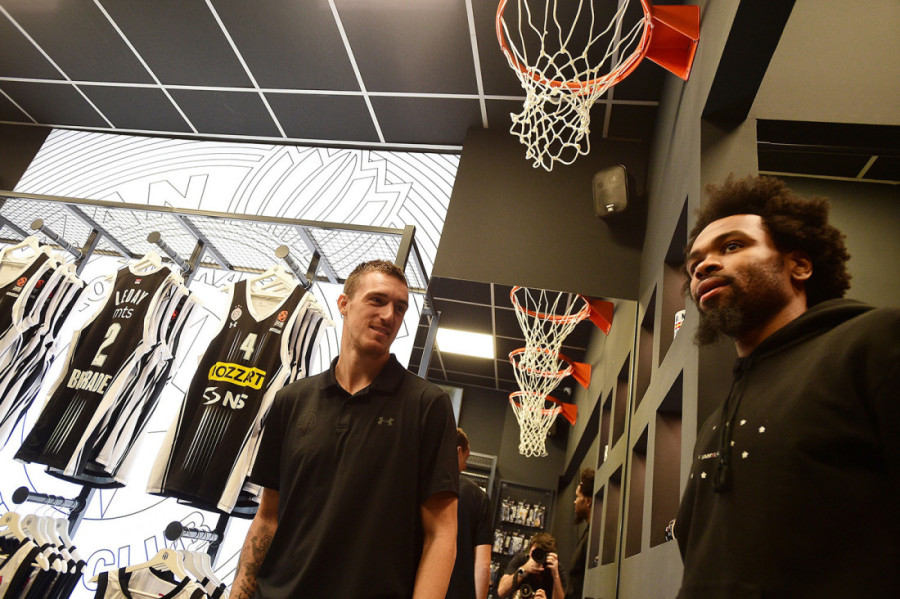 Na primer, tu su bili Kevin Panter, Uroš Trifunović, Alen Smailagić i Danilo Anđušić strpljivo su razgledali prodavnicu. Takođe, svi su pozirali sa svojim dresovima.
