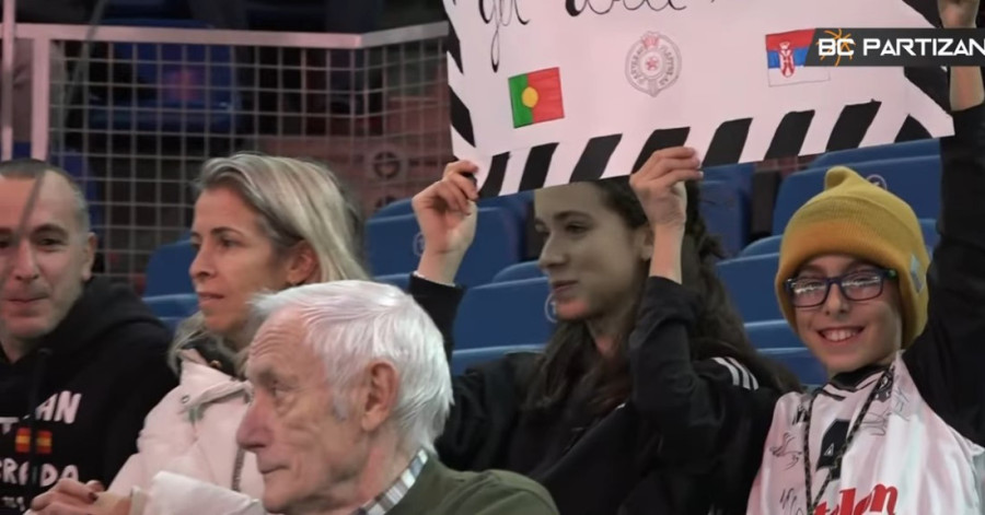 Ljubav prema klubu: Portugalska porodica došla u Vitoriju da navija za Partizan sa jednim transparentom (FOTO)