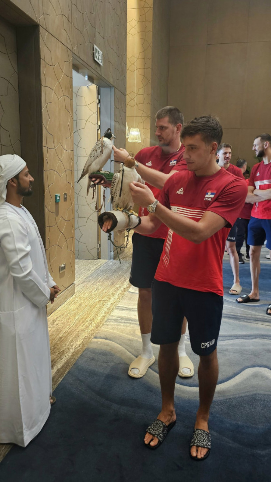 Soko zove orla: Košarkaši Srbije "upoznali" ptice Abu Dabija, pogledajte urnebesnu reakciju Jokića i Bogdana (FOTO, VIDEO)