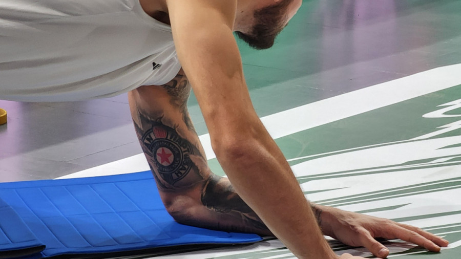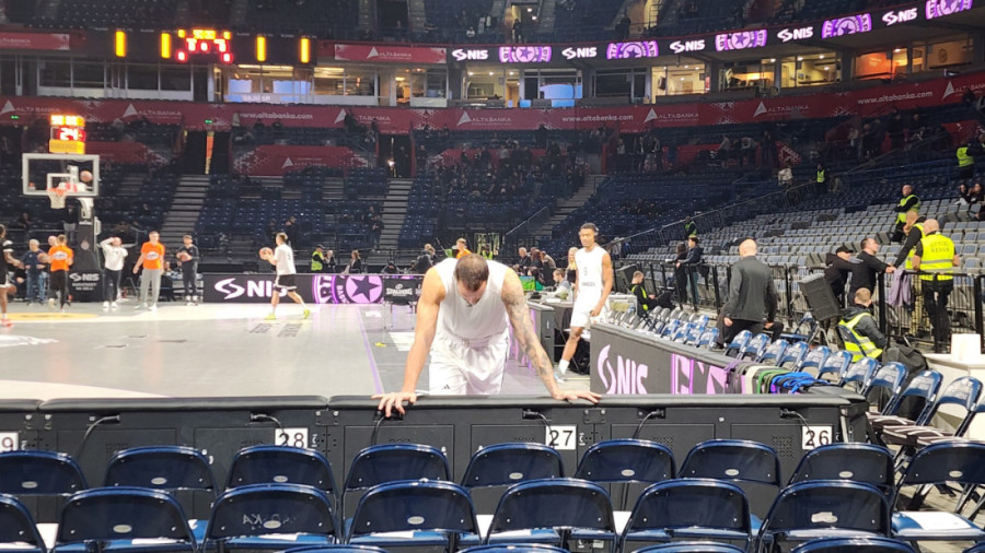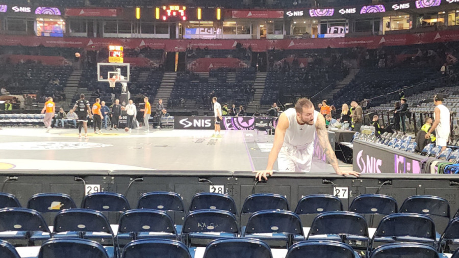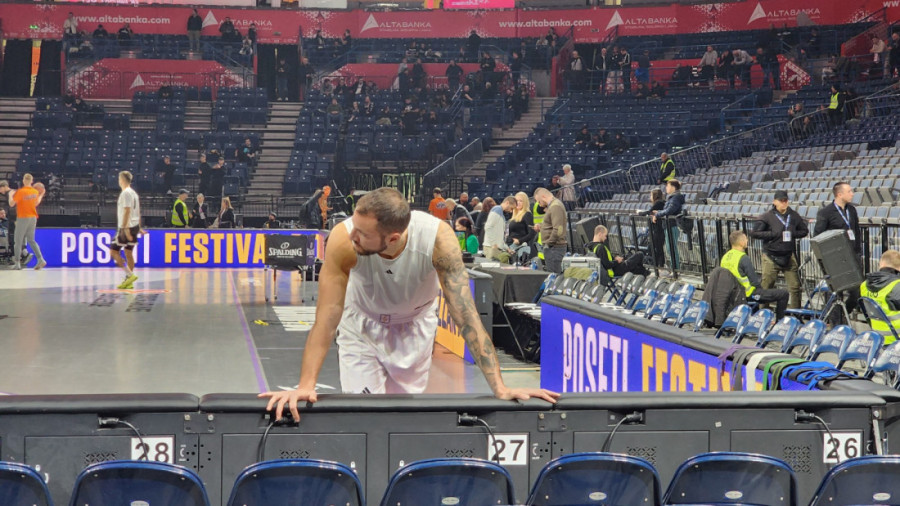 - Na sat i po pre početka meča Žopri Lovernj je izašao na individualno zagrevanje i dobio ovacije navijača koji su već zauzeli svoje mesto u Areni.