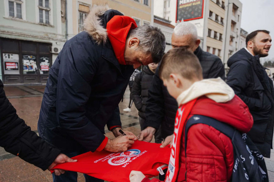 U četvrtak su se Andrej Kostić, Rokas Gedraitis, Džon Braun i sportski direktor Milan Dozet okupili kod štanda klupske prodavnice u centru grada, gde ih je dočekao veliki broj pristalica iz Niša i okolnog regiona.