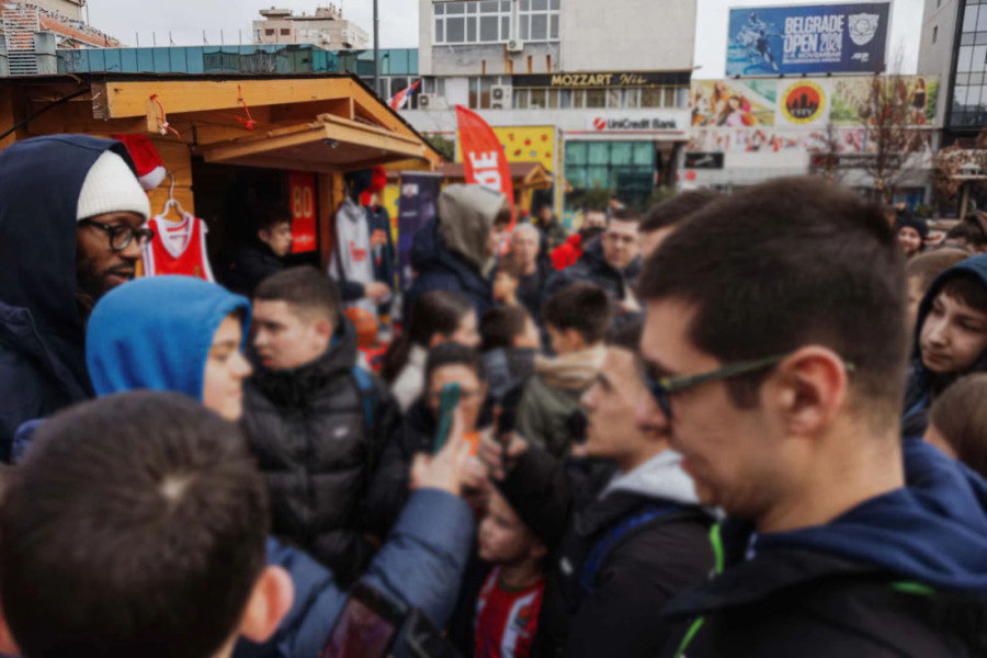 Košarkaši Crvene zvezde iskoristili su slobodan dan tokomKupa Radivoja Koraća u Nišu za druženje sa navijačima.