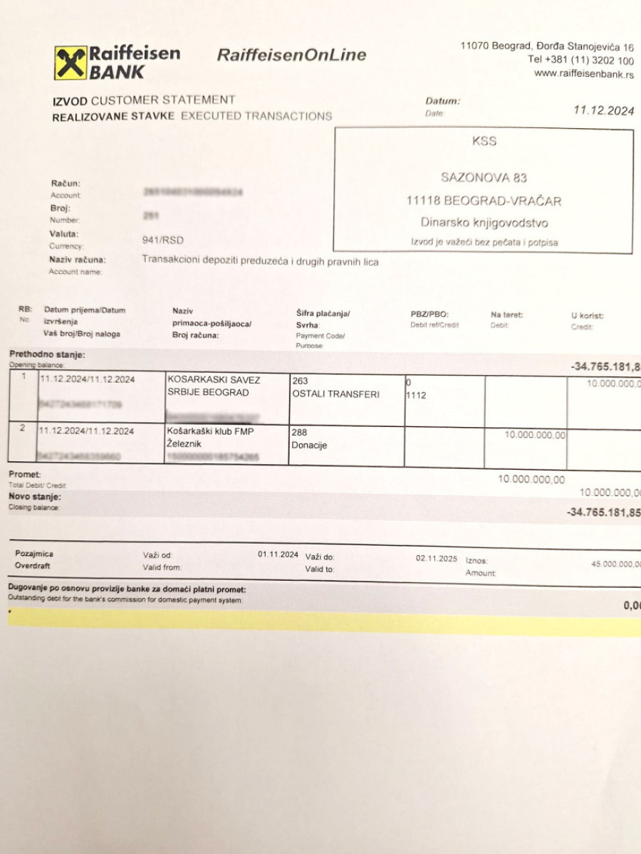 Nakon što smo objavili tekst o uplati 10 miliona dinara na račun KK FMP iz Železnika i postavili pitanje da li je isto urađeno i sa drugim klubovima, stiglo nam je saopštenje Košarkaškog saveza Srbije, sa čijeg računa je pomenuti iznos uplaćen.