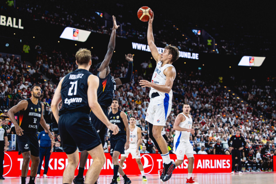 26. minut - Veliki promašaj Jokića za tri, ali sve na kraju ispravlja Vukčević - 53:42. Ovo je do sada najveća prednost Srbije. Vagner ne pogađa iz velike daljine, ali opet lopta za Nemce. I Fojtman pogađa za tri - 53:45.