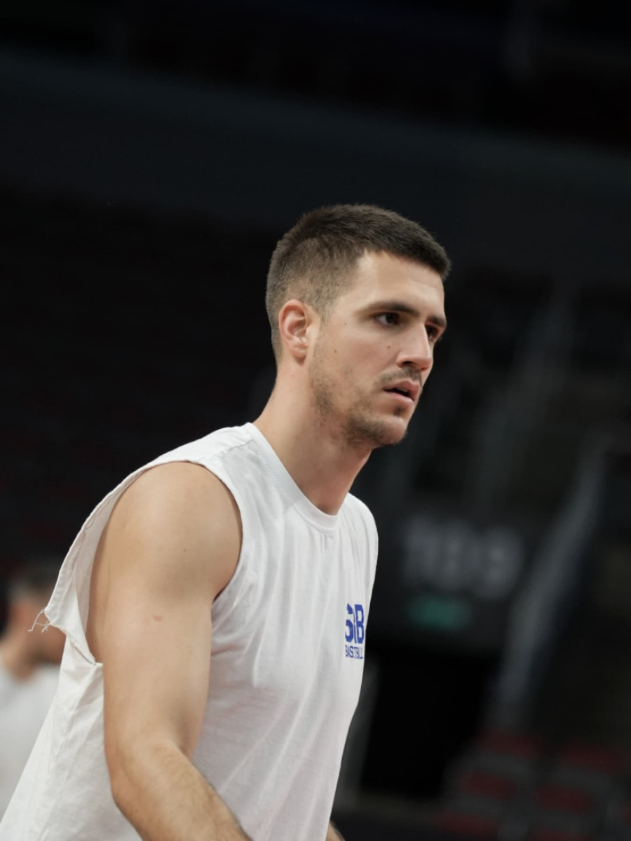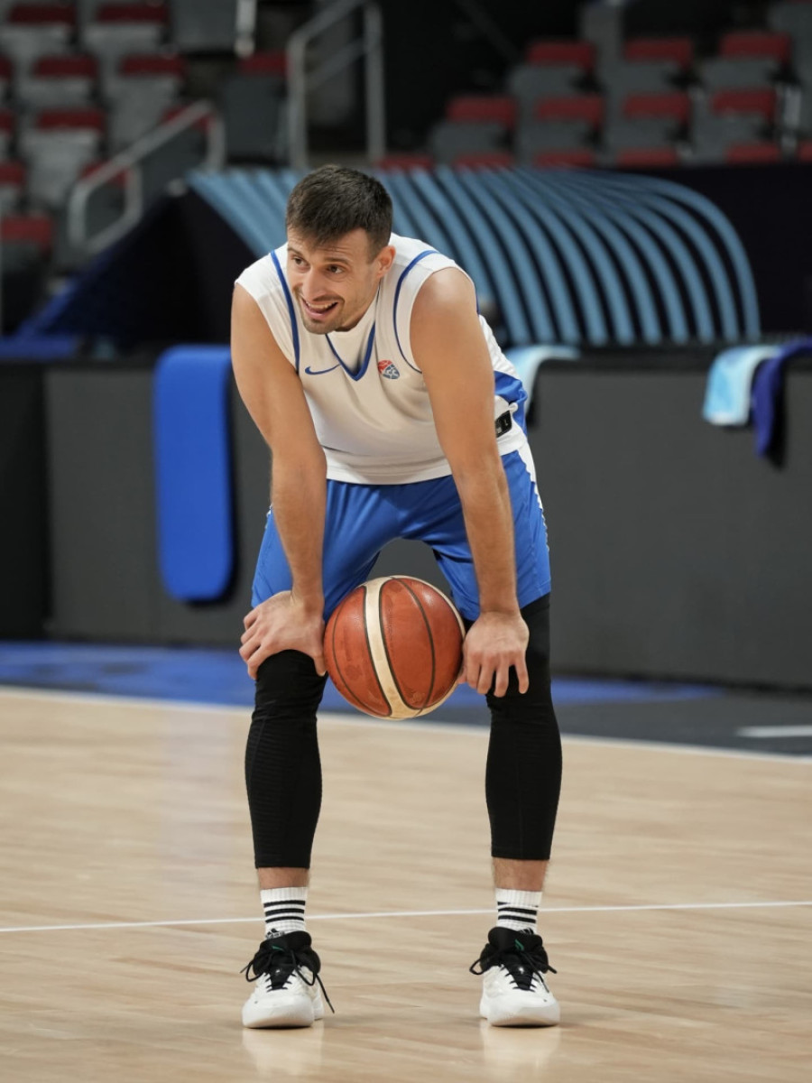 Kao što se može videti na slikama, trenirao je i Vasilije Micić koji je u utakmici sa Česima dobio nezgodan udarac u rebra. Ali je očigledno da je spreman za večerašnji duel.