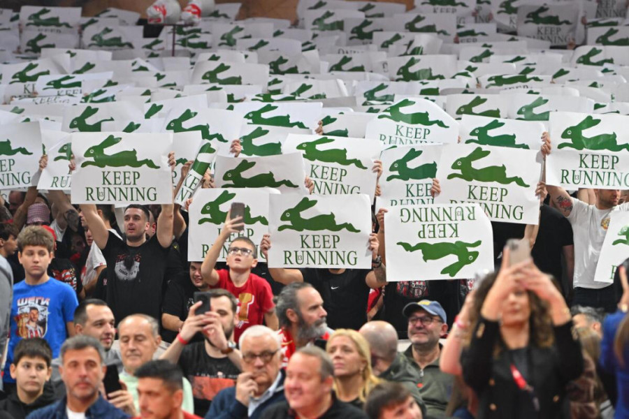 Pa je navijačima PAO-a bila posvećena koreografija, na kojem piše "nastavite da bežite", sa zelenim zecom. Tu je i broj 13 koji je aluzija na ime navijačke grupe Gate 13.