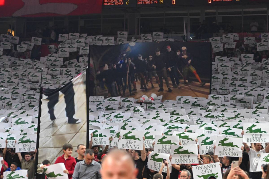 U "Beogradskoj areni" su navijači imali posebnu koreografiju namenjenu gostima iz Atine. Poznato je da su Delije u bratskim odnosima sa fanovima Olimpijakosa, koji je najveći rival "zelenih".