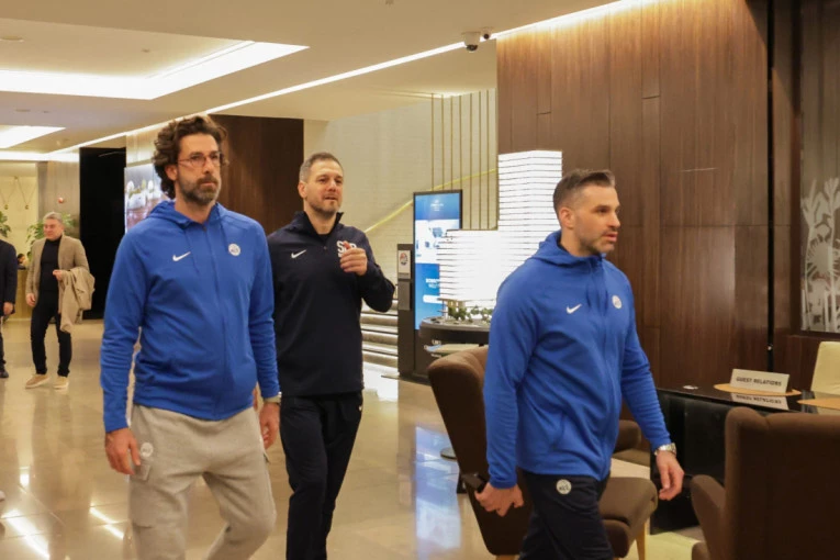 U hotelu „Kraun Plaza” ekipu su dočekali predsednik Košarkaškog saveza Srbije Nebojša Čović i potpredsednik za mušku košarku Nenad Krstić