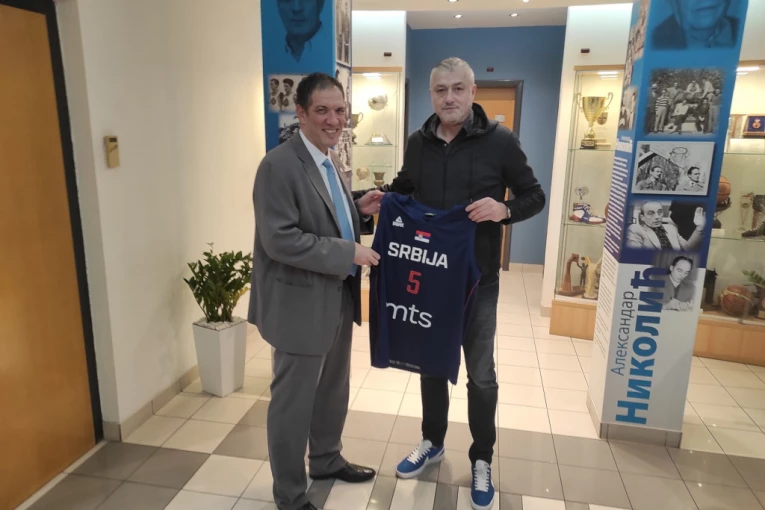 Predsednik KSS Predrag Danilović poklonio je gostu dres naše reprezentacije sa njegovim prezimenom na leđima.