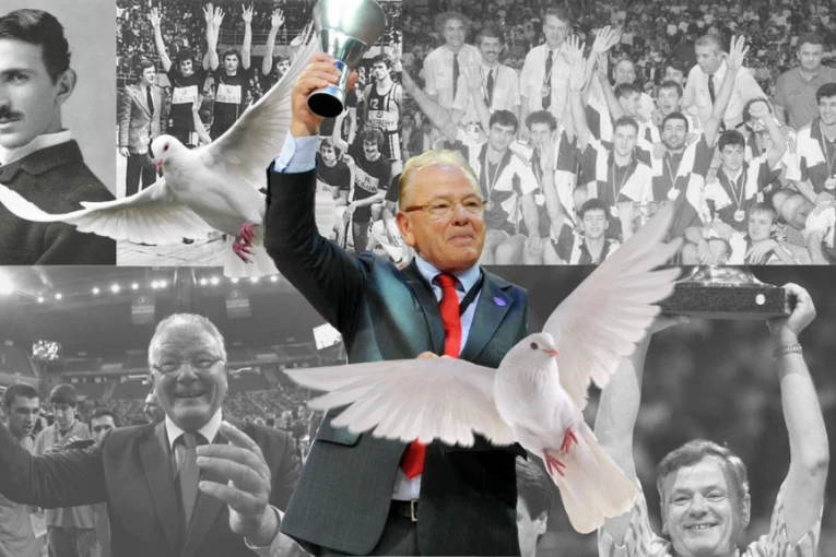 Zanimljiv je i kolaž kojim su se oprostili treneri Evrolige. Na njoj dominira legendarni stručnjak i golub, a u pozadini su njegove fotografije sa Partizanom, reprezentacijom Jugoslavije, Željkom Obradovićem i njegov slavni predak Nikola Tesla.