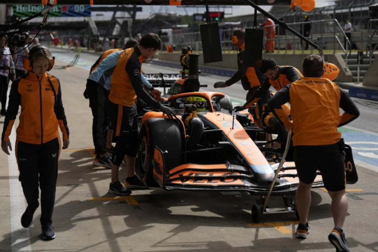 Jedna takva sitgla je sa čuvene staze Silverston, tačnije iz boksa tima Meklaren tokom treninga. Uvezao je Lando Noris svoj bolid na promenu točkova i onda je nastala komedija.