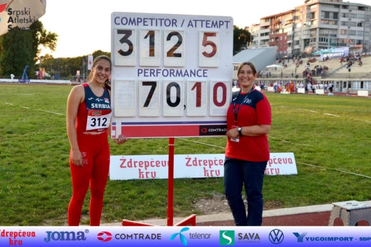 Mlada srpska atletičarka Adriana Vilagoš bacila je koplje težine 500 grama do svetskog rekorda u konkurenciji mlađih juniorki – 70,10 metara.