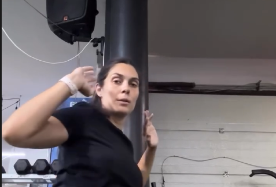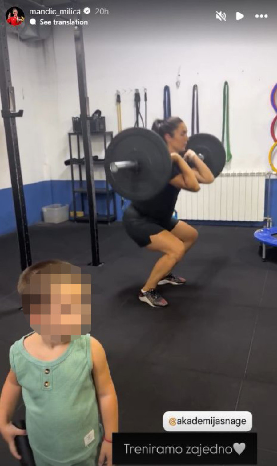 Milica je u teretani radila vežbe, a kasnije počela i da diže tegove. Sve vreme joj je društvo pravio sin Mateja.