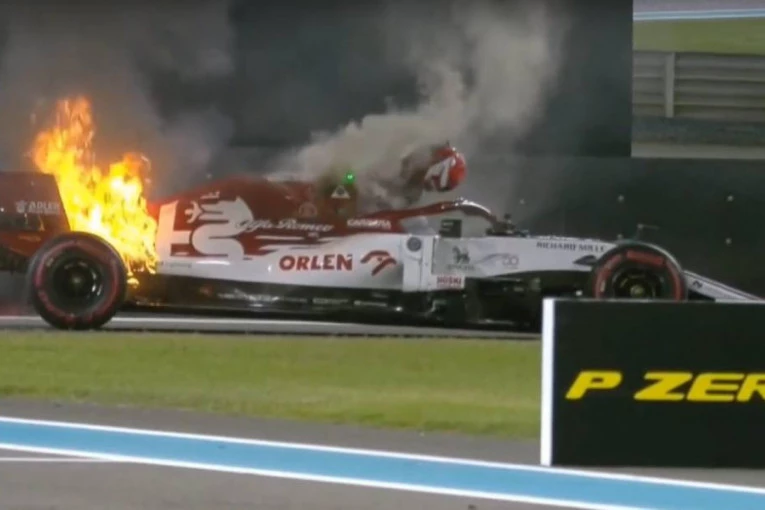 Raikonenov “alfa romeo” se zapalio, naizgled iz čista mira. Veteran se sjajno snašao u kriznom momentu. Dok je njegov bolid gutala vatra, on je uspeo da iz njega iskoči, a u pomoć su mu odmah pritrčali vatrogasci i medicinska služba.