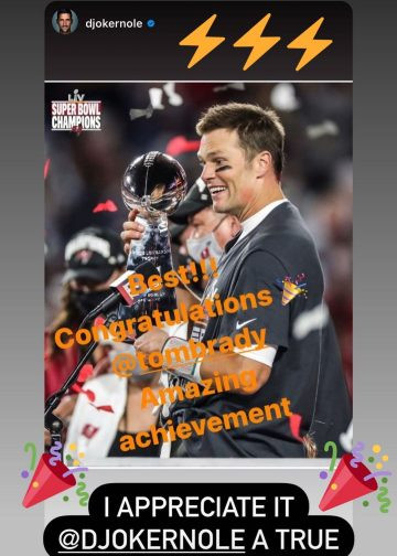 Zato je Đoković posle sedmog osvojenog Superboula, ovoga puta sa ekipom Tampa bej Bakanirsa, uputio čestitku legendarnom kvoterbeku preko Instagrama, a ovaj je posle dana slavlja poslao svoj odgovor:
