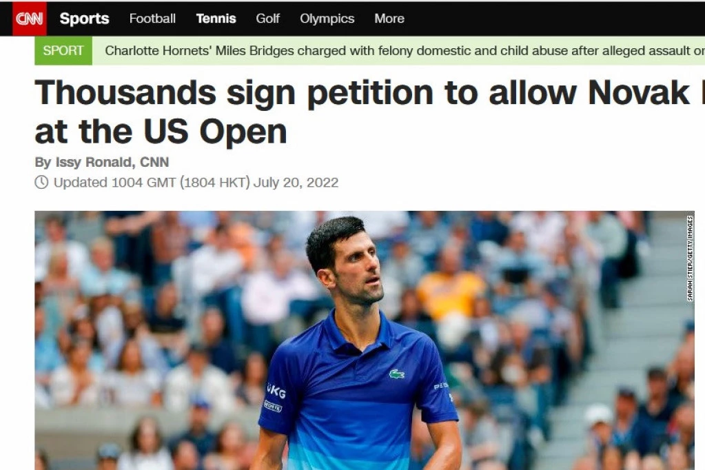 Portal američke TV stanice CNN uključio se u priču o Novaku Đokoviću i njegovom eventualnom učešću na US openu koji počinje 29. avgusta u Njujorku.