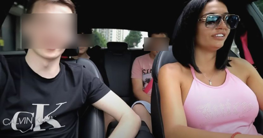 Sada se pojavio i snimak u kojem vozi dva dečaka i pokazuje im fotografije obnaženih žena. U sve je uključen i njen suvozač.