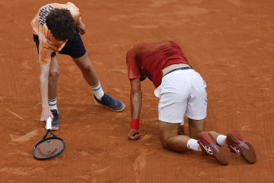 Novak Đoković je uz mnogo muke uspeo da dođe do izjednačenja u setovima meča osmine finala Rolan Garosa, protiv Fransiska Serundola, na 2:2. Ali je tokom petog seta ušao u novu raspravu.