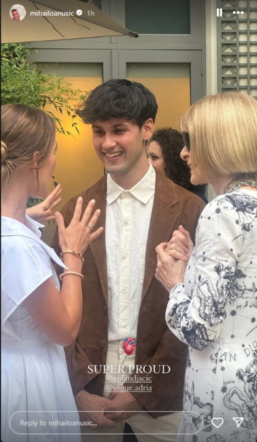 Na jednoj od fotografija koju je objavio srpski dizajner Mihailo Anušić, Jelena je opušteno ćaskala sa Anom Vintur i Milanom Đačićem, a sve je izgledalo veoma glamurozno.