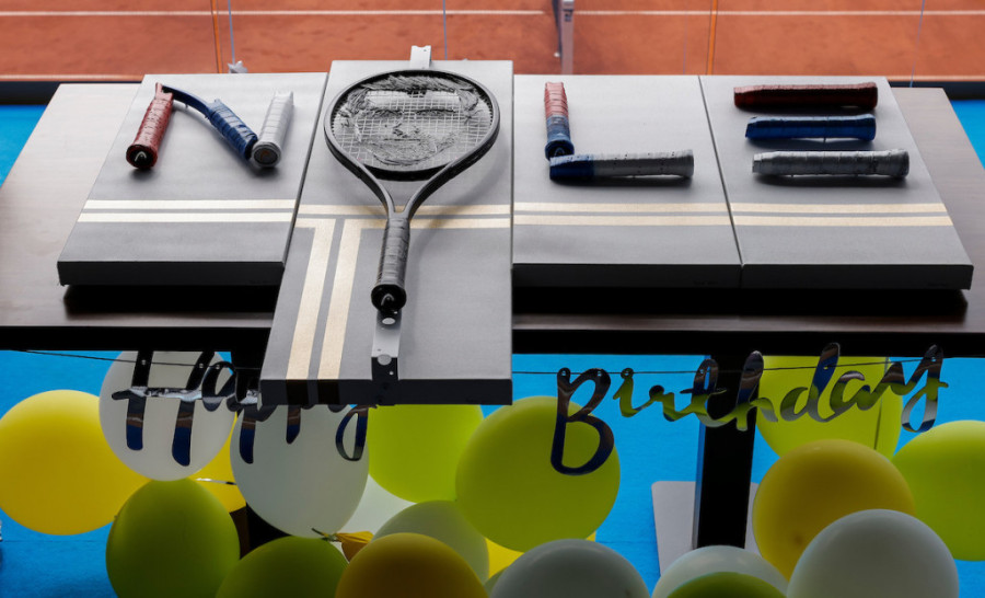 Najbolji teniser sveta Novak Đoković proslavio je danas 34. rođendan, a tim povodom prijatno iznenađenje sačekalo ga jepo dolasku na terene centra Novak – specijalni reket, od žica napravljen lik najboljeg tenisera na svetu i torta u obliku teniskih loptica.