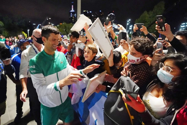 Naravno, Srbi su u stopu pratili Novaka i posle ceremonije dodele pehara, gde je razgovarao za australijsku televizuju za koju uvek daje intervju posle finala, a u pozadini se čuje kako navijači pevaju rakija, a Đoković ih pozdravlja.
