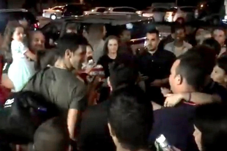 Prilaz autobusu koji je odvezao tenisera na aerodrom bio je potpuno blokiran. Svi su želeli Novakov autogram, slefi sa možda i najboljim sportistom koga je Srbija ikada imala. A Novak, kao Novak… Nije želeo bilo koga da ostavi bez uspomene na susret. Strpljivo se slikao, potpisivao loptice, zastave Srbije, majice, držao je decu u naručju… Posle nekoliko minuta uspeo je da se probije kroz masu do autobusa.