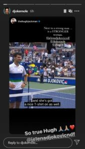 – Pored jakog muškarca uvek stoji jaka žena – napisao je Džekmen, a kao “prilog” je dodao video-snimak posle jednog od Noletovih mečeva u Njujorku na kojem je Jelena nosila majicu sa Novakovim likom u silueti vuka.