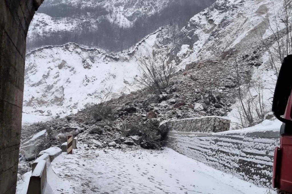 Nekoliko stotina kubika stena i kamenja, tokom noći oburvalo se na put, zbog čega je saobraćaj totalno obustavljen.