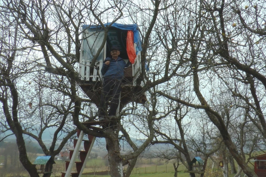Nije retkost da ljudi u penziji reše da se isele iz grada i mirne dane provedu u prirodi. Najčešće odlaze u vikendice po selima, ali Žarko Nešovanović otišao je korak dalje i iz svoje kuće preselio se na obližnje drvo. Krošnja jabuke postala je njegov novi dom , na kojoj je napravio pravu pravcatu kuću u kojoj može da odmara.