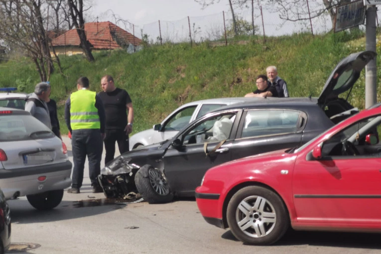 Lančani sudar u Čačku - tri vozila se slupala: Vazdušni jastuci se aktivirali od udara, delovi automobila svuda po putu (FOTO)