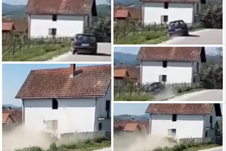 Društvenim mrežama kruži video snimak na kom se vidi vozač kako usred dana gubi kontrolu nad automobilom, probija ogradu i udara u kuću.